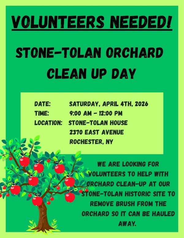 The Landmark Society is looking for volunteers to help with final orchard clean-up at our Stone-Tolan Historic Site in Brighton. Orchard pruning has been completed and now we are looking for volunteers to help us remove the brush from the orchard so it can be hauled away.